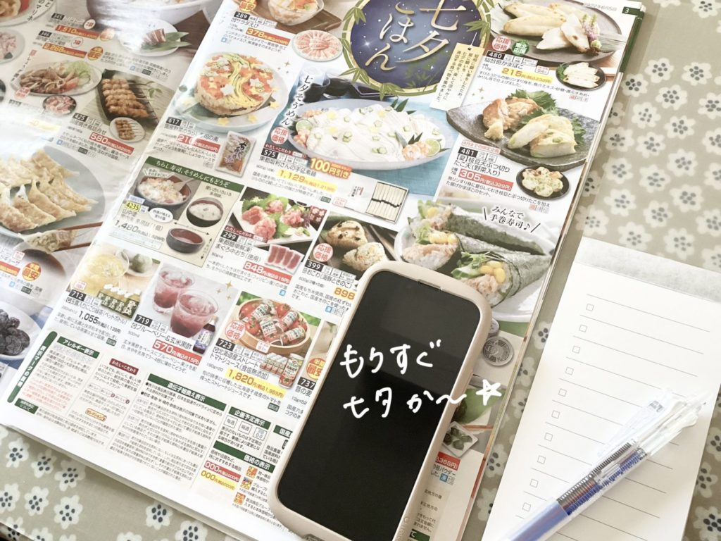 机上でコープのカタログと紙とペンを用意して、