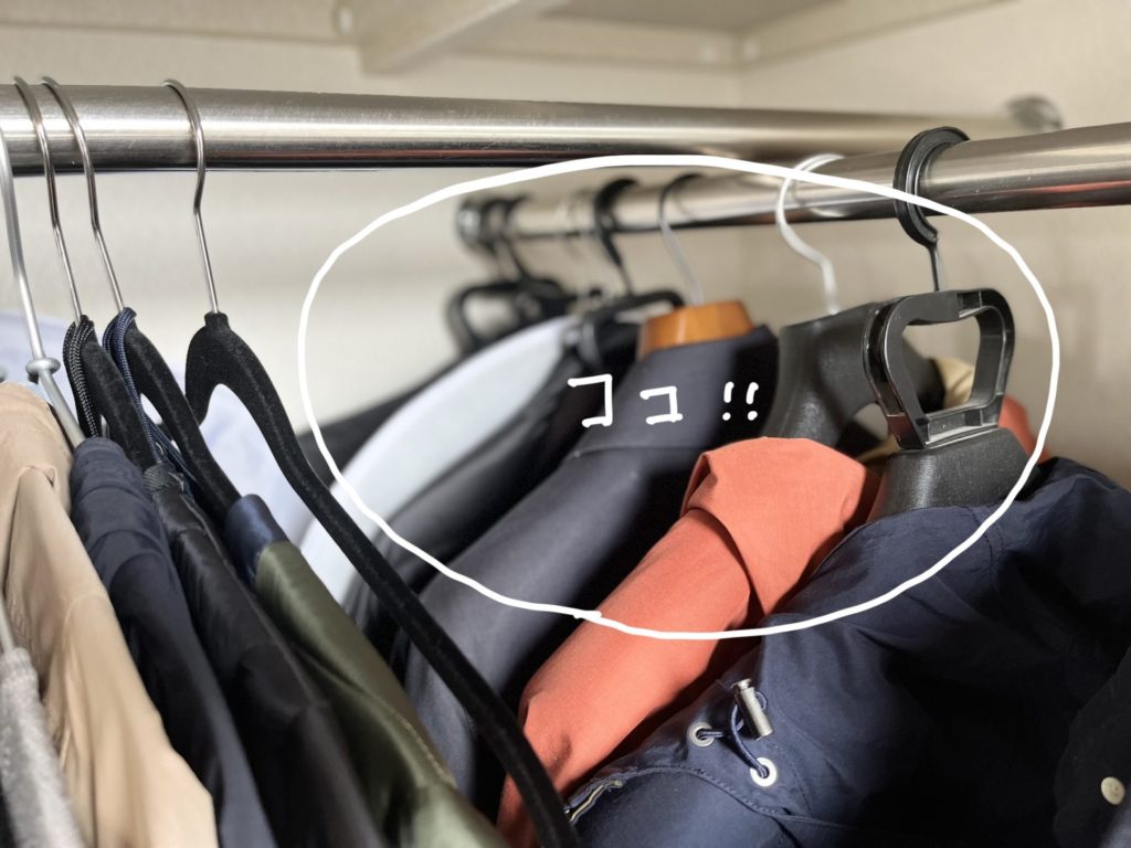 さて、我が家のクローゼット、実はハンガーが交差した箇所があり、