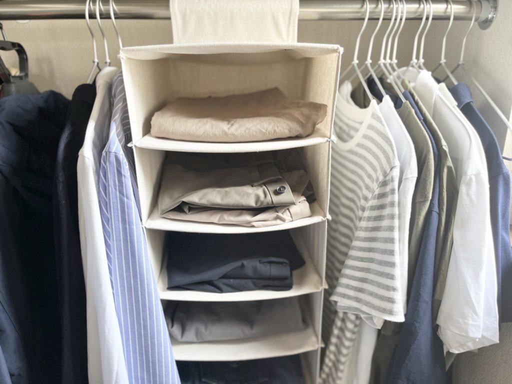 ズボンは吊り下げ収納を使って畳んで収納しています。