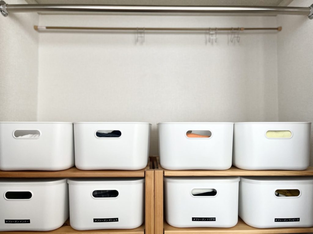 クローゼット入口側にオンシーズン服、奥側にオフシーズン服となるように。