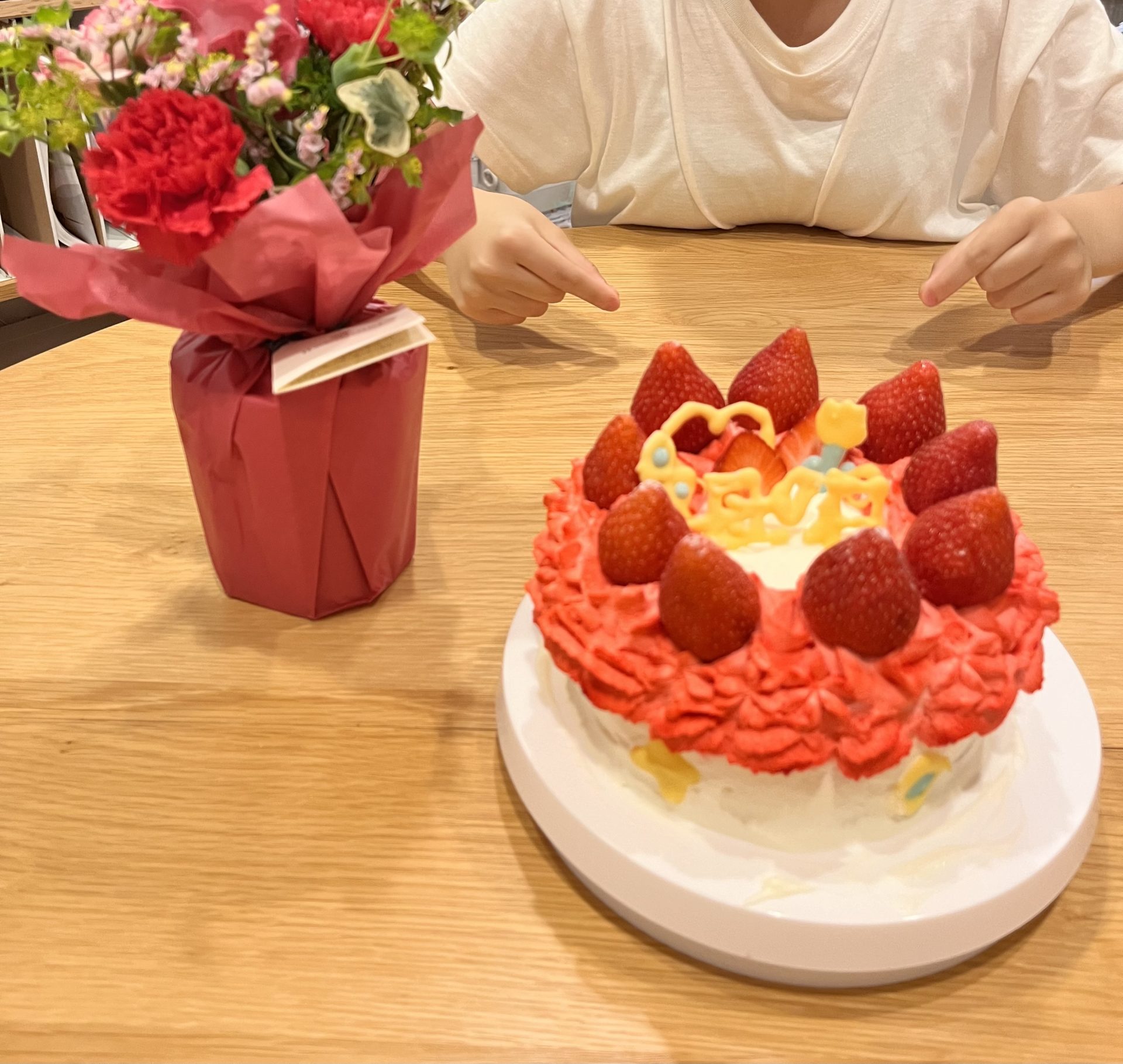 笑顔で嬉しそうにケーキを見せてくれたことが